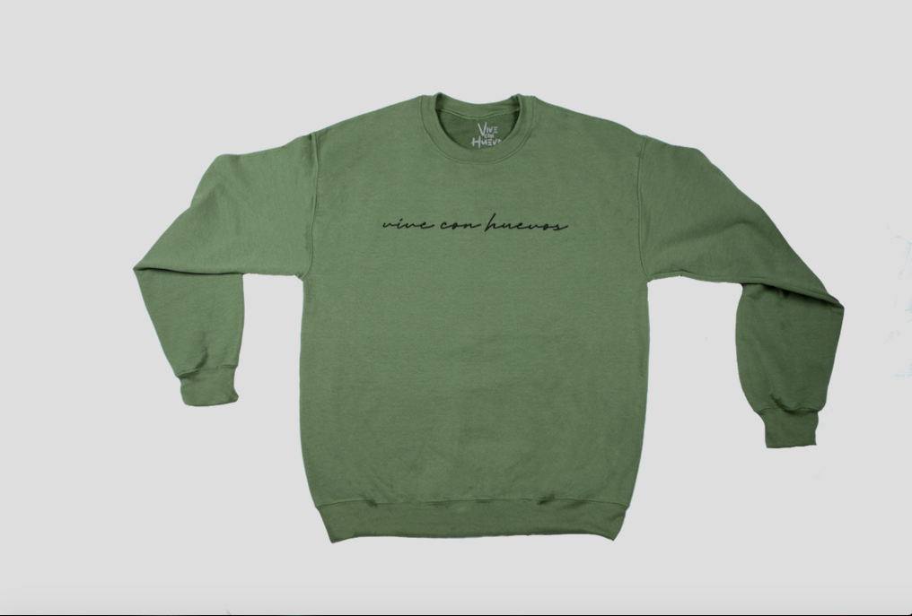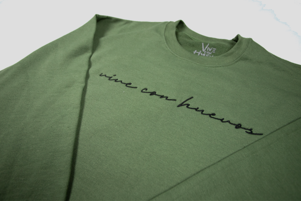Embroidered crew neck olive green